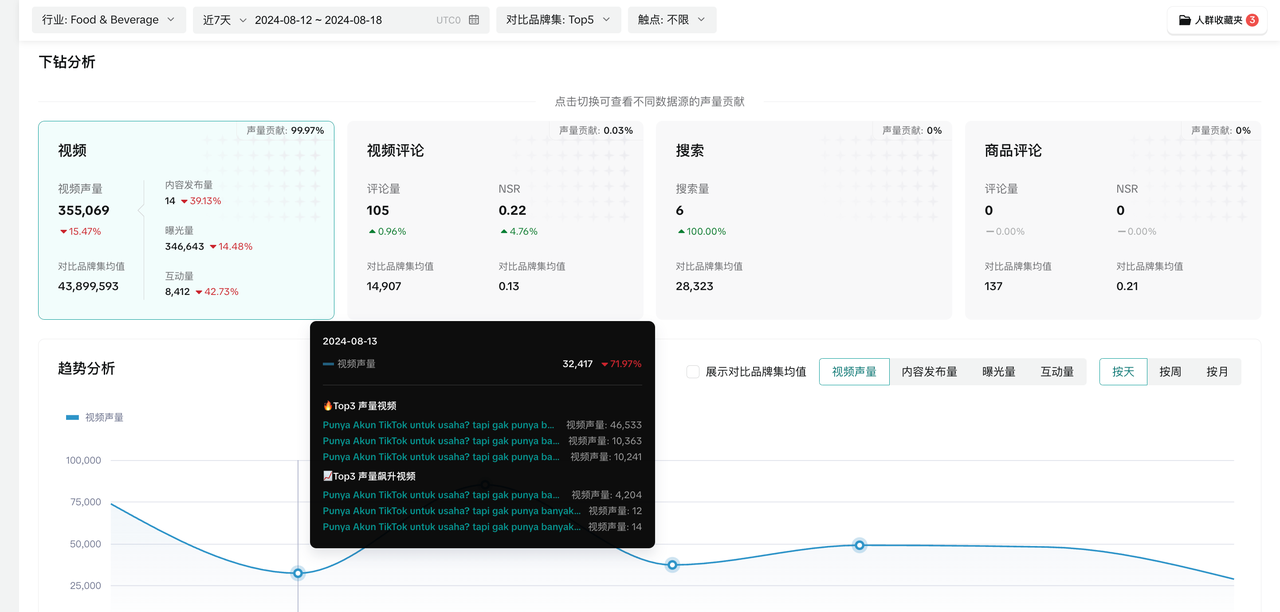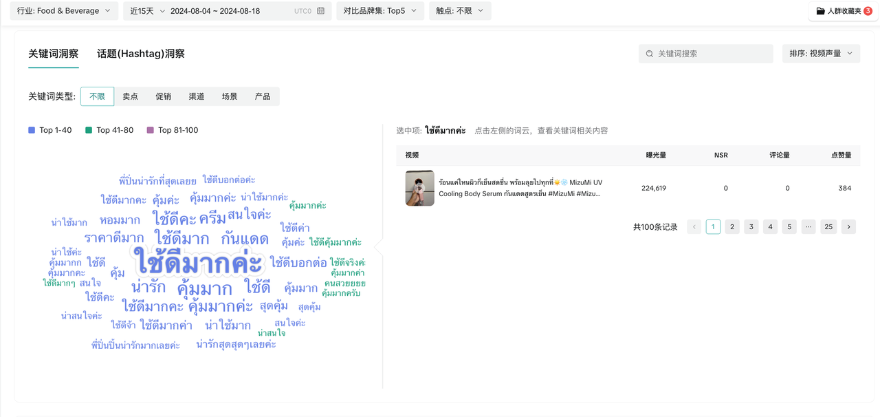 • 营销洞察:洞悉品类下短视频关键词分布趋势,优化品牌内容核心沟通点。