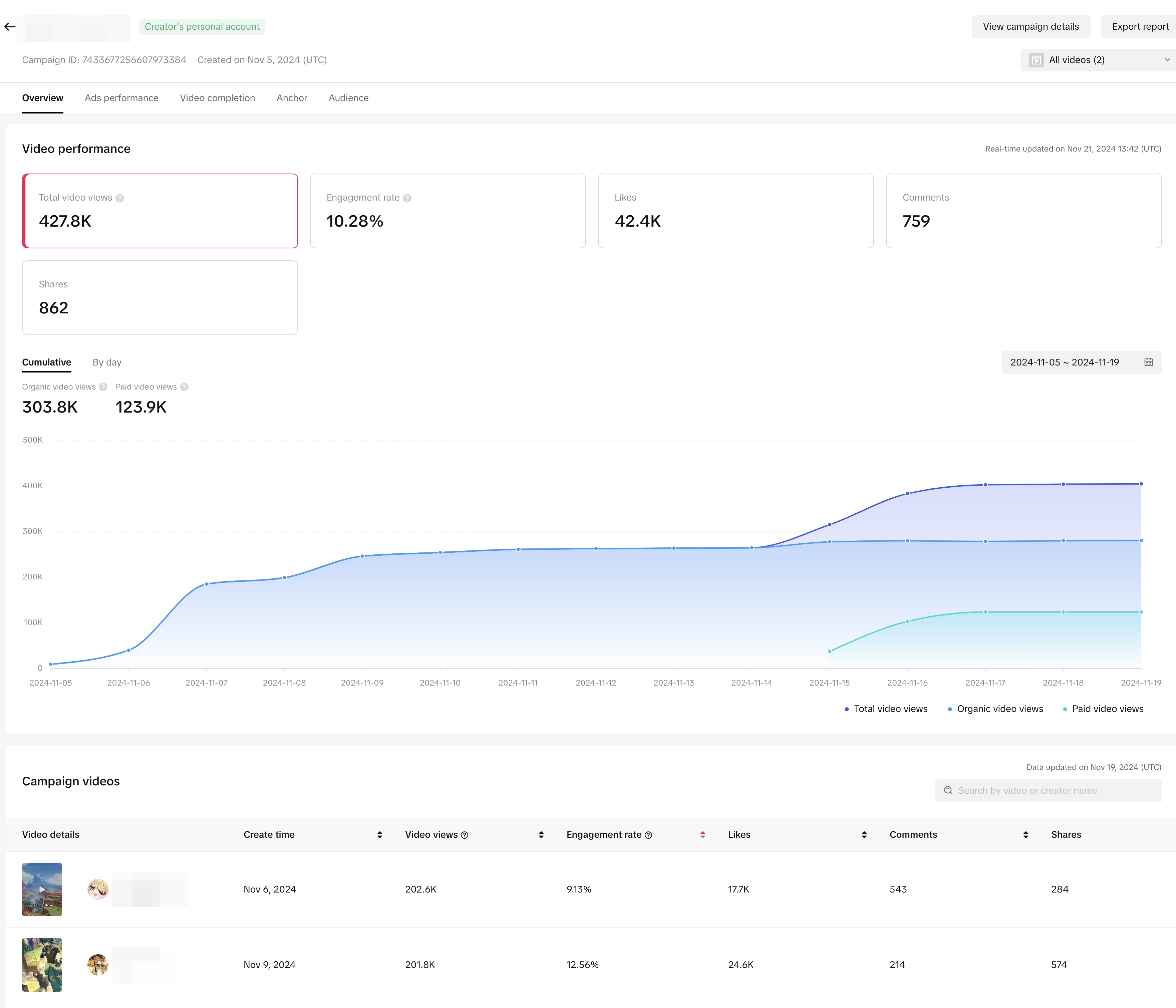 • 与达人合作品牌内容(原 TTCM 平台内容):您可以购买达人的原生(自然流量)影响力,以一口价向达人付费。