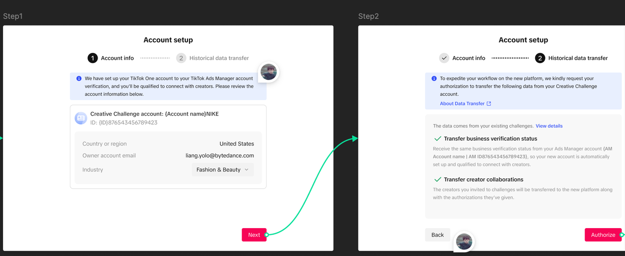 随着新平台的上线启用,旧平台 TikTok Creator Marketplace 和 TikTok Creative Challenge 即将下线。如果您是在旧平台已有账号的老用户,需尽快做好迁移工作;如果您是没有账号的新用户,可以直接注册新的 TikTok One 账号。