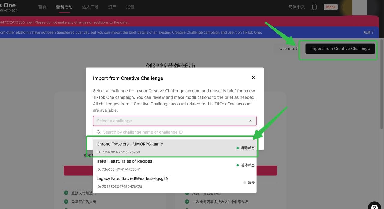 • 点击右上角“Import from Creative Challenge”,把 TTCC 挑战的 brief 复制到新平台,确认 brief 内容后发布