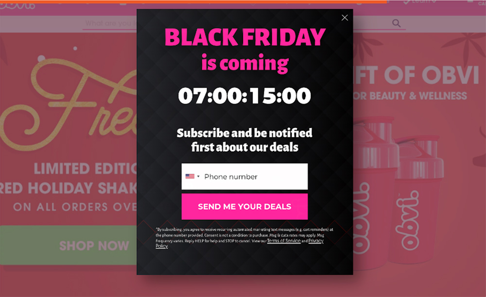 美国 D2C 保健品品牌 Obvi,从2019年就意识到了 Mcommerce 的重要。 为了给2021年的黑五预热,他们在官网提前设置了专属促销链接。凡是点击链接的顾客都会被建议留下手机号以获取黑五的最新消息。通过这样的方式,他们获得上千个线索,并在黑五当天通过短信的方式来引导顾客们到官网购买,最终为品牌带来了比往年高出24.6%的转化率 。²