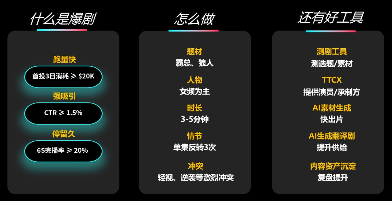 在短剧席卷全球内容市场的浪潮中,国内短剧厂商想要抓住风口,行至长远,借力优势平台、打造爆剧、精细投流皆是关键。从入局到变现,TikTok for Business 提供一站式解决方案助力出海短剧经营变得简单高效,行业长效增长,拥有一个更具有确定性的未来。